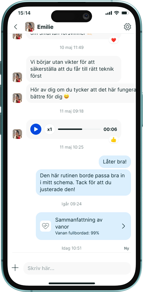 För att göra allt så enkelt som möjligt för dig finns allt i min app, du har allting med dig vart du än, kostplan, recept, träningsplaner, tracker och vår egen chatt.